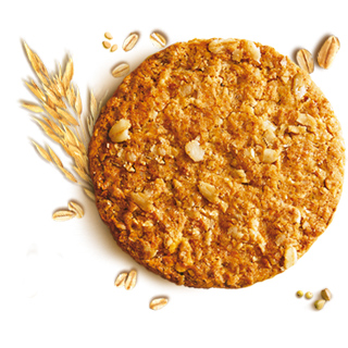 fiocchi di avena 34%, farina integrale di frumento 34%, grasso vegetale non idrogenato di palma, zucchero, sciroppo di glucosio, agenti lievitanti (carbonato acido d’ammonio, carbonato acido di sodio), sale, aroma.