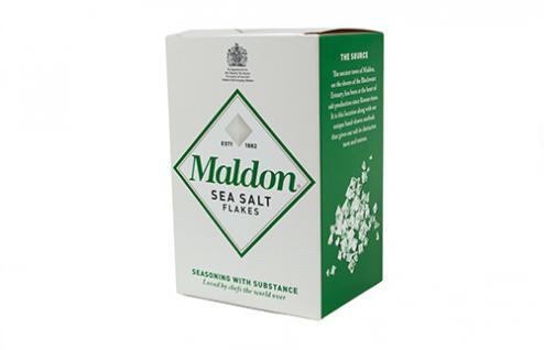 Maldon è una delle più antiche cittadine della contea di Essex, in Inghilterra, attivissima fin dal Medioevo come centro marittimo di grande importanza. Il sale di Maldon si presenta sotto forma di scaglie molto fragili e facilmente sbriciolabili; ha un sapore spiccato, capace di dare vivacit soprattutto alle carni. Peck suggerisce di utilizzarlo a fine cottura, cospargendolo sopra il piatto.