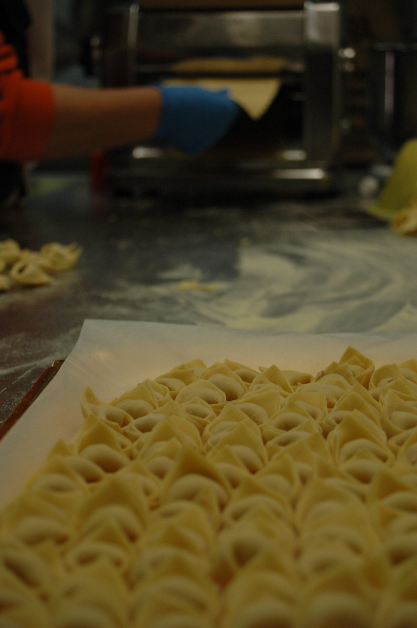 Farina , uova , prosciutto di Parma stagionato 16 mesi, mortadella, Parmigiano Reggiano, arista di suino.